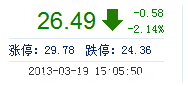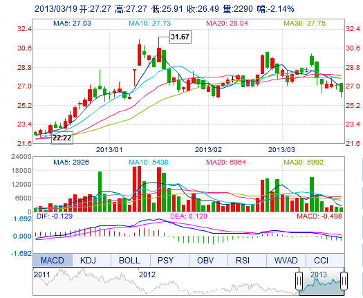 | 今 開: | 27.27 | 成交量: | 2290手 | 振 幅: | 5.02% |