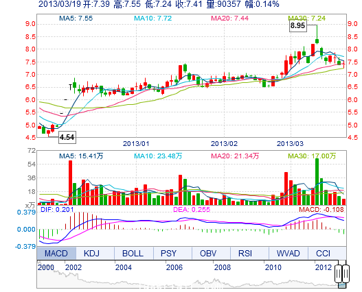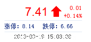 | 今 開: | 7.39 | 成交量: | 9.04萬(wan) 手 | 振 幅: | 4.19% |