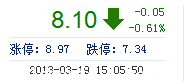 | 昨 收: | 8.15 | 流通市值: | 15.73億(yi) | 市盈率TTM: | 94.21 |