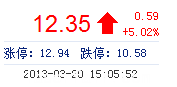 | 最 高: | 12.36 | 成交額: | 3.92億(yi) 元 | 換手率: | 3.43% |