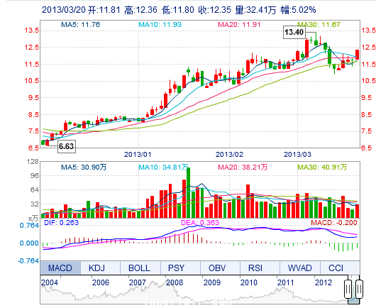 | 今 開: | 11.81 | 成交量: | 32.41萬(wan) 手 | 振 幅: | 4.76% |
