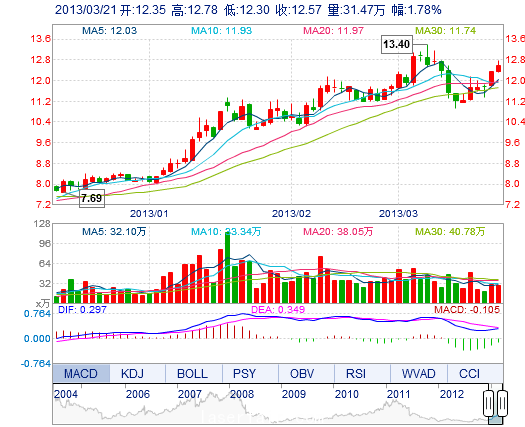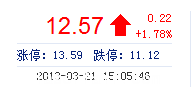 | 最 高: | 12.78 | 成交額: | 3.95億(yi) 元 | 換手率: | 3.33% |