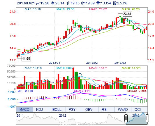 | 今 開: | 19.20 | 成交量: | 1.34萬(wan) 手 | 振 幅: | 5.10% |