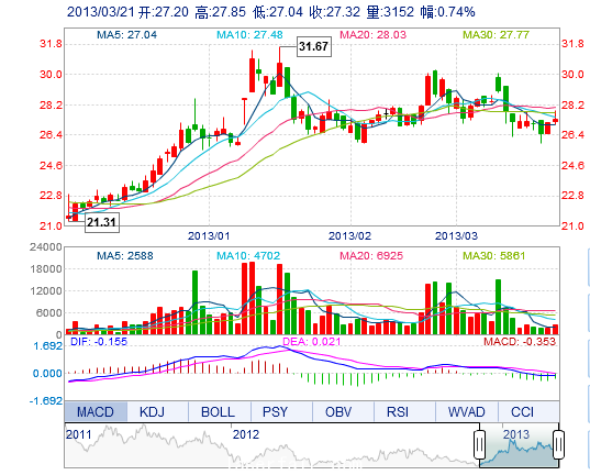 | 昨 收: | 27.12 | 流通市值: | 2.86億(yi) | 市盈率TTM: | 71.25 |