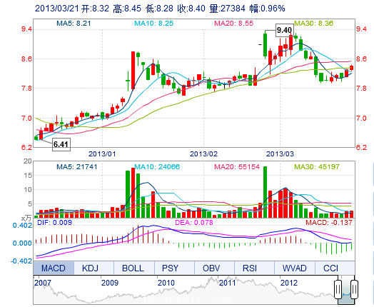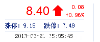 | 今 開: | 8.32 | 成交量: | 2.74萬(wan) 手 | 振 幅: | 2.04% |