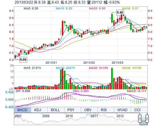 | 今 開: | 8.39 | 成交量: | 2.01萬(wan) 手 | 振 幅: | 2.14% |