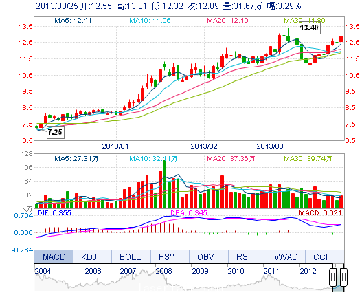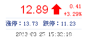 | 今 開: | 12.55 | 成交量: | 31.67萬(wan) 手 | 振 幅: | 5.53% |
