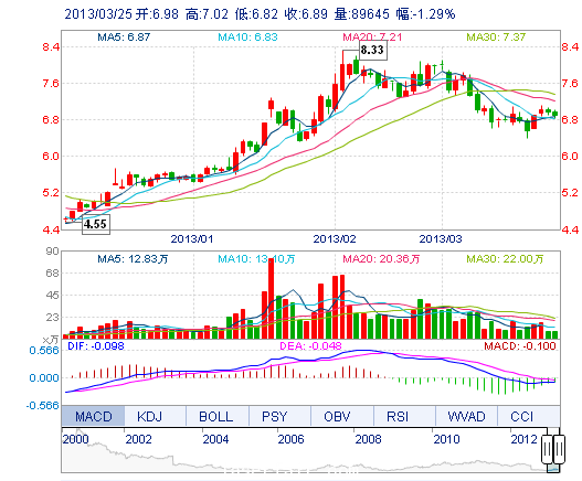 | 最 低: | 6.82 | 總市值: | 61.40億(yi) | 市淨率: | 2.35 |