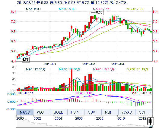 | 今 開: | 6.83 | 成交量: | 10.82萬(wan) 手 | 振 幅: | 3.77% |
