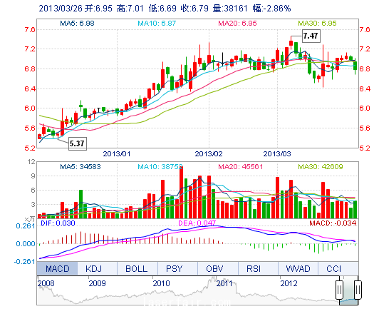 | 今 開: | 6.95 | 成交量: | 3.82萬(wan) 手 | 振 幅: | 4.58% |