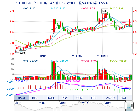 | 今 開: | 8.30 | 成交量: | 4.42萬(wan) 手 | 振 幅: | 3.50% |