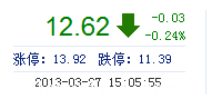 | 最 高: | 12.99 | 成交額: | 3.19億(yi) 元 | 換手率: | 2.65% |