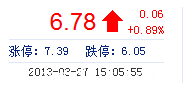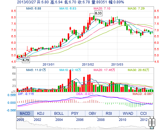 | 今 開: | 6.80 | 成交量: | 8.94萬(wan) 手 | 振 幅: | 3.57% |