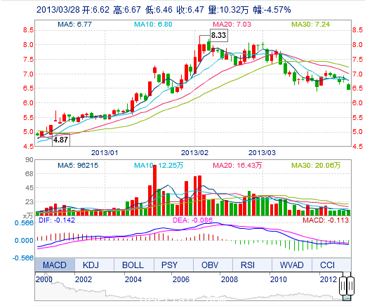| 最 低: | 6.46 | 總市值: | 57.66億(yi) | 市淨率: | 2.21 |
