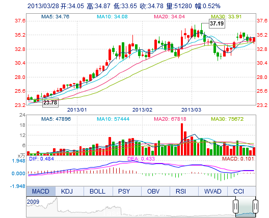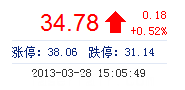 | 最 高: | 34.87 | 成交額: | 1.76億(yi) 元 | 換手率: | 1.86% |