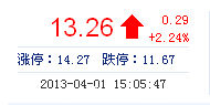 | 最 高: | 13.47 | 成交額: | 5.88億(yi) 元 | 換手率: | 4.75% |