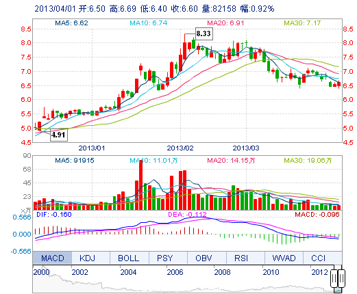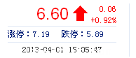 | 今 開: | 6.50 | 成交量: | 8.22萬(wan) 手 | 振 幅: | 4.43% |