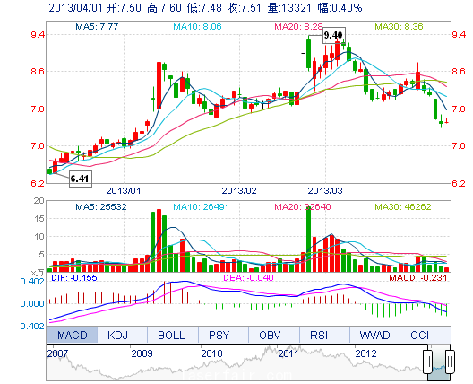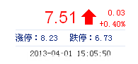 | 今 開: | 7.50 | 成交量: | 1.33萬(wan) 手 | 振 幅: | 1.60% |