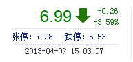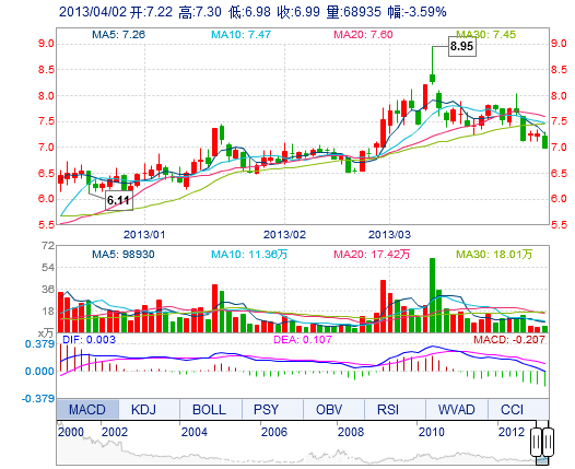 | 今 開: | 7.22 | 成交量: | 6.89萬(wan) 手 | 振 幅: | 4.41% |