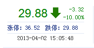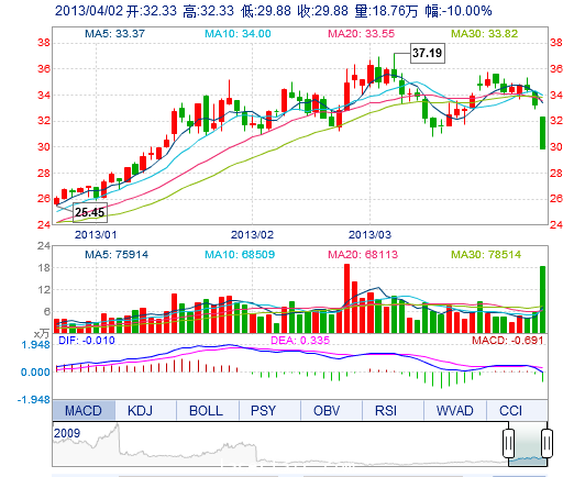 | 今 開: | 32.33 | 成交量: | 18.76萬(wan) 手 | 振 幅: | 7.38% |