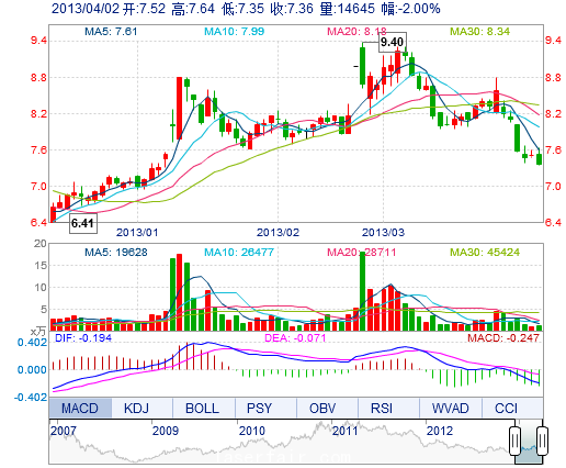 | 今 開: | 7.52 | 成交量: | 1.46萬(wan) 手 | 振 幅: | 3.86% |