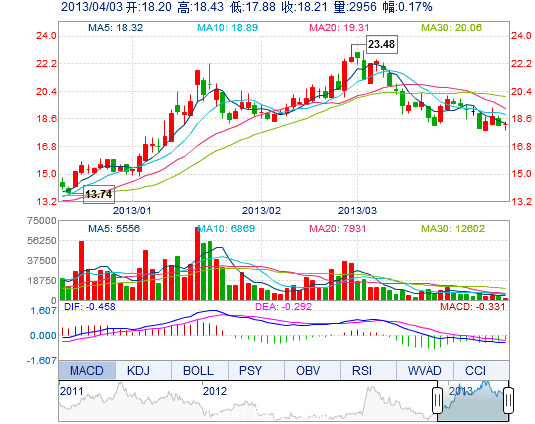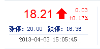 | 今 開: | 18.20 | 成交量: | 2956手 | 振 幅: | 3.03% |