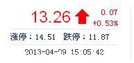 | 昨 收: | 13.19 | 流通市值: | 125.44億 | 市盈率TTM: | 16.78 |