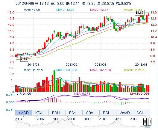| 最 高: | 13.60 | 成交額: | 5.17億元 | 換手率: | 4.08% |
