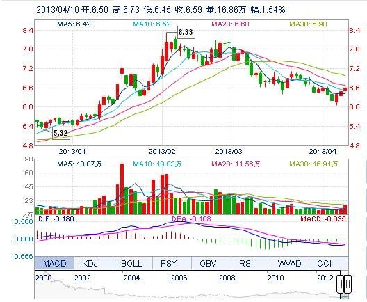 | 今 開: | 6.50 | 成交量: | 16.86萬手 | 振 幅: | 4.31% |