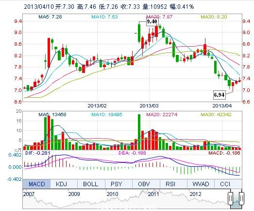 | 今 開: | 7.30 | 成交量: | 1.10萬手 | 振 幅: | 2.74% |