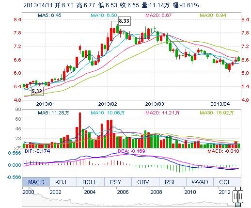 | 今 開: | 6.70 | 成交量: | 11.14萬手 | 振 幅: | 3.64% |