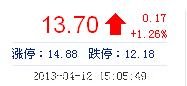 | 昨 收: | 13.53 | 流通市值: | 129.60億 | 市盈率TTM: | 17.33 |