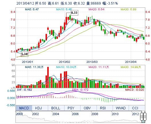 | 昨 收: | 6.55 | 流通市值: | 56.32億 | 市盈率TTM: | 37.49 |