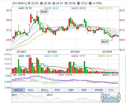 | 今 開: | 25.82 | 成交量: | 1032手 | 振 幅: | 2.21% |