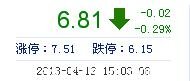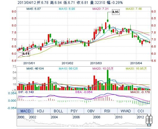 | 今 開: | 6.78 | 成交量: | 3.23萬手 | 振 幅: | 3.37% |