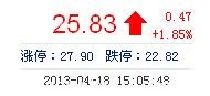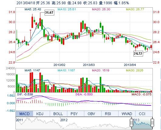 | 今 開: | 25.36 | 成交量: | 1996手 | 振 幅: | 3.94% |