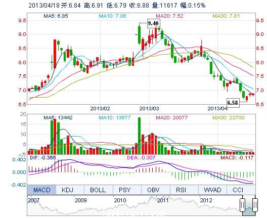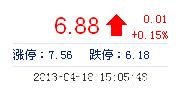 | 今 開: | 6.84 | 成交量: | 1.16萬手 | 振 幅: | 1.75% |