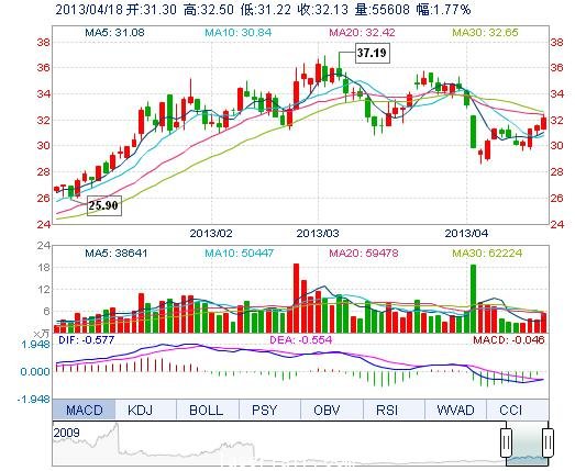 | 最 高: | 32.50 | 成交額: | 1.78億元 | 換手率: | 1.94% |