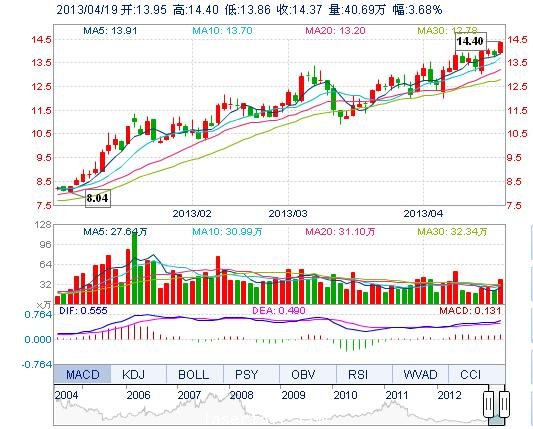 | 最 高: | 14.40 | 成交額: | 5.79億元 | 換手率: | 4.30% |
