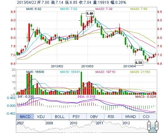 | 今 開: | 7.00 | 成交量: | 1.99萬手 | 振 幅: | 2.71% |