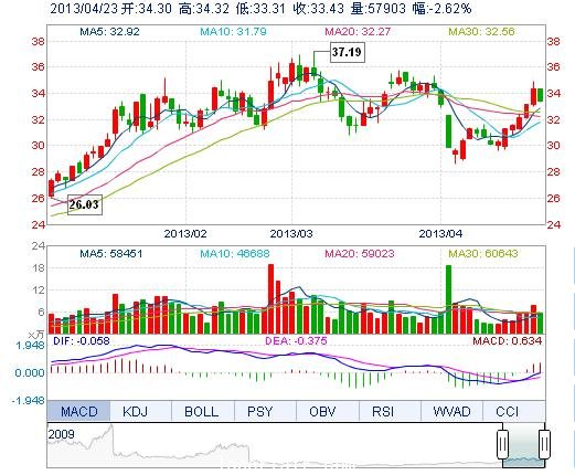 | 今 開: | 34.30 | 成交量: | 5.79萬手 | 振 幅: | 2.94% |