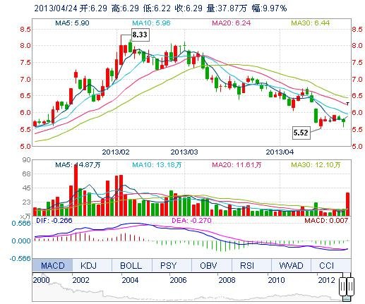 | 最 高: | 6.29 | 成交額: | 2.38億元 | 換手率: | 4.25% |