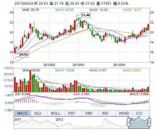 | 最 高: | 21.79 | 成交額: | 3649.49萬元 | 換手率: | 8.77% |