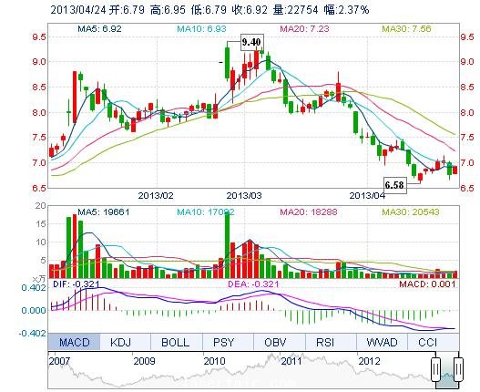 | 今 開: | 6.79 | 成交量: | 2.28萬手 | 振 幅: | 2.37% |