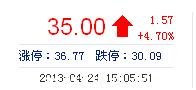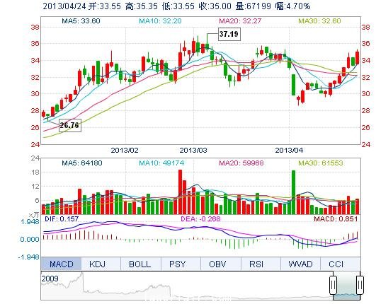 今開: 33.55 成交量: 6.72萬(wan) 手 振幅: 5.38% 最高: 35.35 成交額: 2.33億(yi) 元 換手率: 2.34% 最低: 33.55 總市值: 104.18億(yi) 市淨率: 7.46 昨收: 33.43 流通市值...