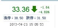 | 今 開: | 35.26 | 成交量: | 14.27萬手 | 振 幅: | 10.26% |