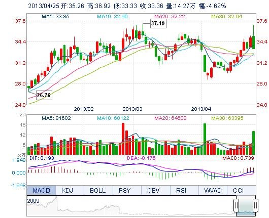 | 最 高: | 36.92 | 成交額: | 5.04億元 | 換手率: | 4.97% |