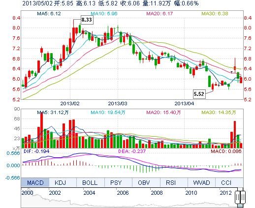 | 今 開: | 5.85 | 成交量: | 11.92萬手 | 振 幅: | 5.15% |