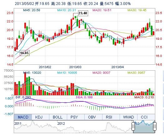 今開: 19.65 成交量: 5475手 振幅: 3.72% 最高: 20.38 成交額: 1100.75萬(wan) 元 換手率: 2.81% 最低: 19.65 總市值: 13.56億(yi) 市淨率: 4.24 昨收: 19.65 流通市值...