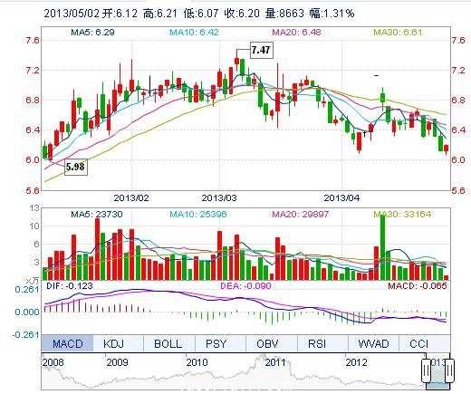 | 今 開: | 6.12 | 成交量: | 8663手 | 振 幅: | 2.29% |
